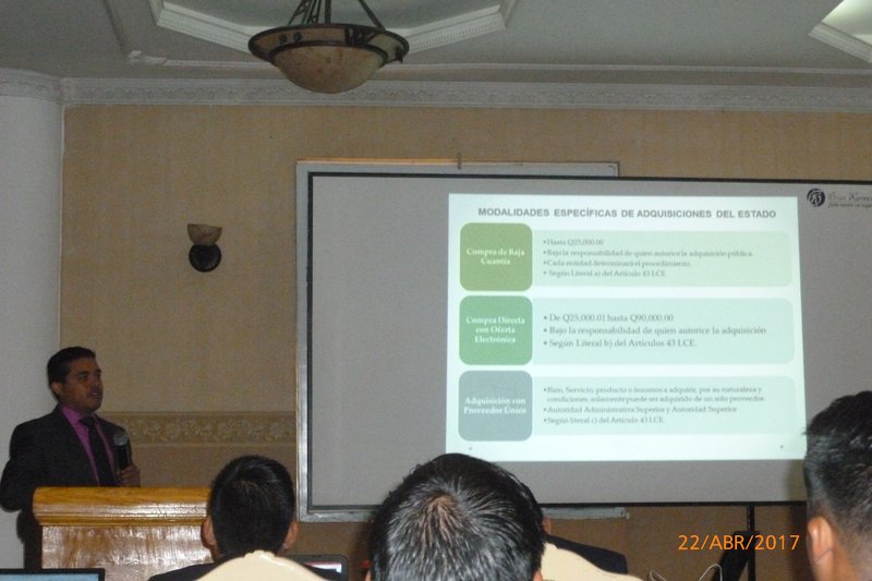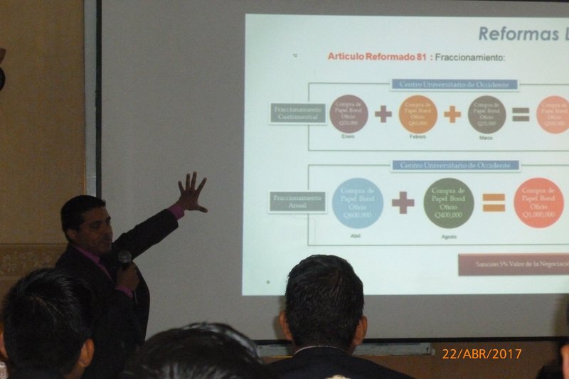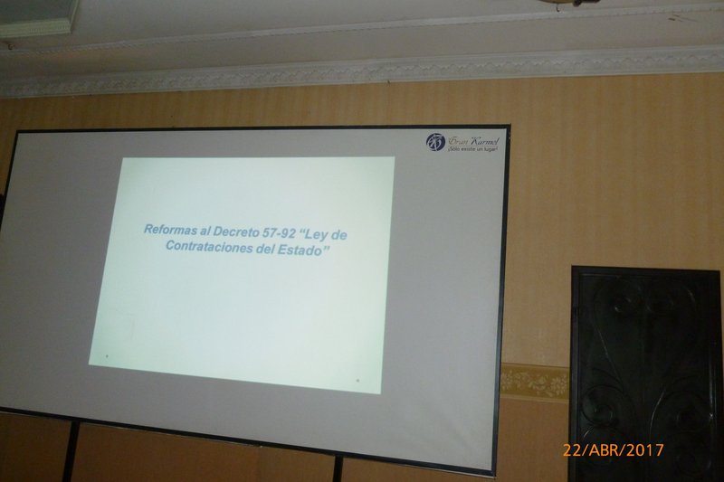 El sábado 22 de abril de 2017 se llevó a cabo la conferencia titulada "GUATECOMPRAS" realizada en el Centro Gran Karmel por los maestrantes de la Maestría en CONSULTORIA TRIBUTARIA Cohorte 2016-2018, en el curso de Política Fiscal impartido por el Msc. Mario Siliezar.