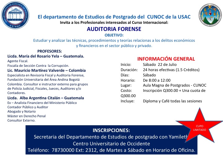 El Departamento de Estudios de Postgrado invita a todos los profesionales interesados al curso de "Auditoría Forense"