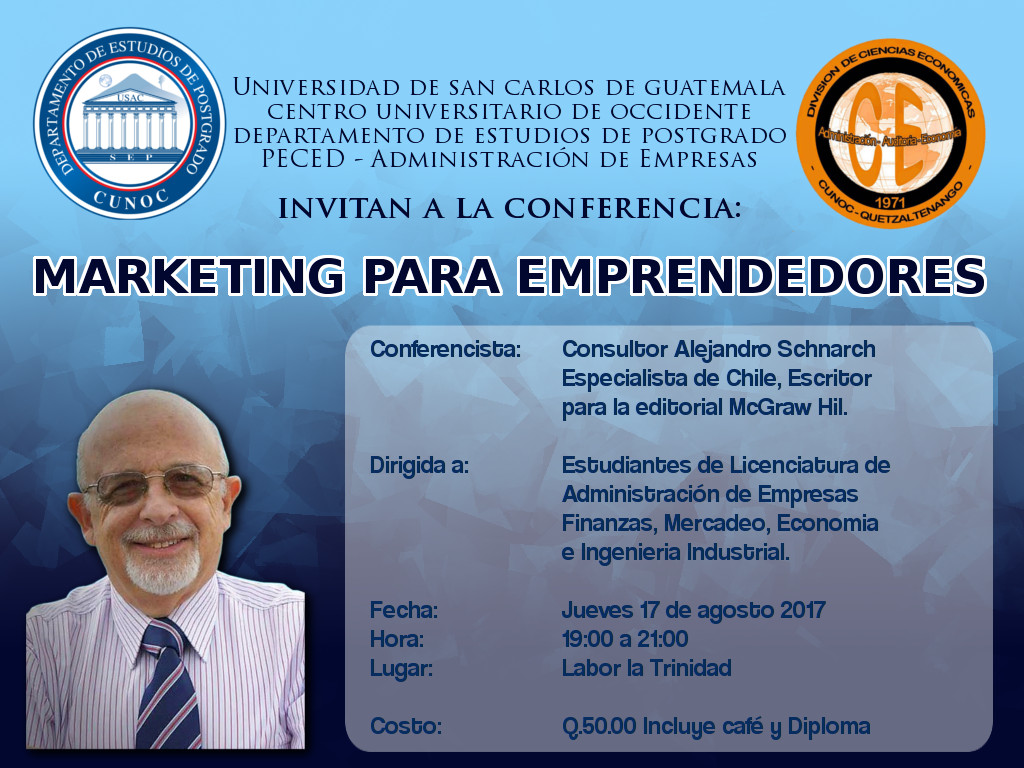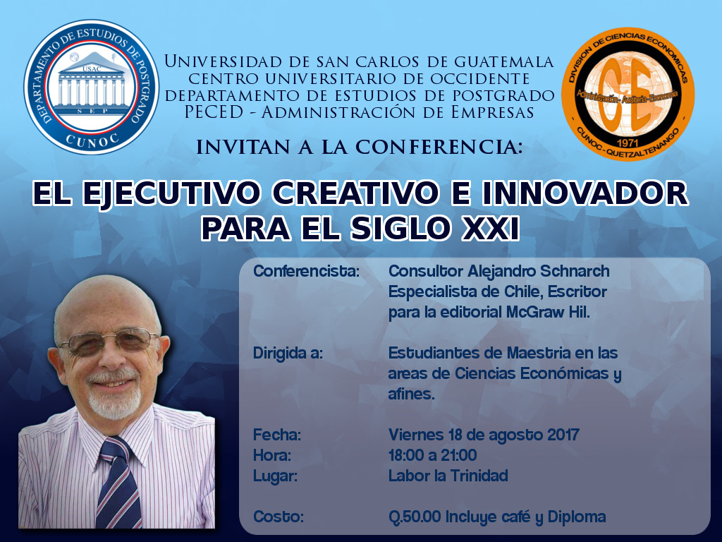 Se invita a la población que desee participar en las diferentes conferencias a ser realizadas 17 y 18 de Agosto de 2017 por parte del Licenciado Alejandro Schnarch Kirberg experto conferencista, consultor y escritor del país de Chile.