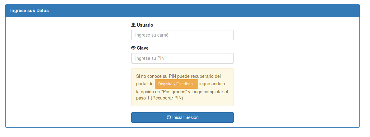 2. Ingresar sus datos de usuario y clave (registro académico y PIN) si es estudiante con cierre, deberá solicitar los datos en la ventanilla del control académico del departamento y comunicandose al 78730000 ext 2351.