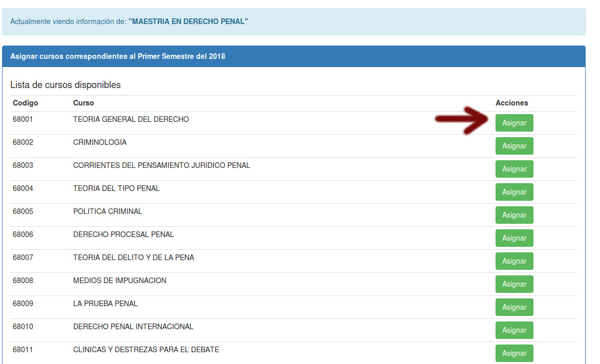 4. Presionar el botón de "Asignar cursos"
