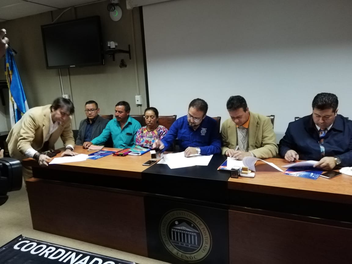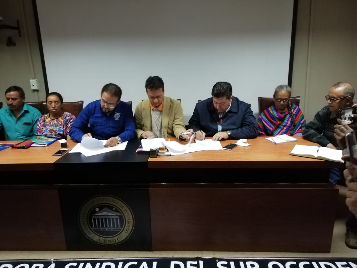 Imágenes de la firma de la Carta de Entendimiento para la Cooperación Inter Institucional entre el Centro Universitario de Occidente de la Universidad de San Carlos de Guatemala, el Departamento de Estudios de Postgrado y la Coordinadora Sindical del Suroccidente COSINSO.