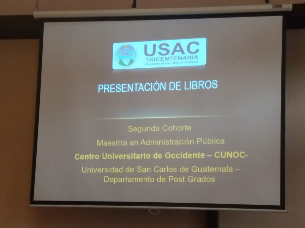 El día 24 de Agosto de 2019 se realizó la presentación de libros escritos por los estudiantes de la Maestría en Administración Pública del Departamento de Estudios de Postgrados del Centro Universitario de Occidente CUNOC - USAC.