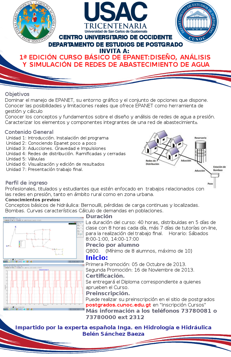Se invita a toda la comunidad interesada a participar del curso de EPANET impartido por la Ingeniera Hidráulica e Hidróloga Belen Sanchez Baeza